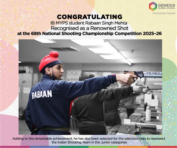 We are proud to share that IB MYP5 student Rabaan Singh Mehta has been recognised as a Renowned Shot at the 68th National Shooting Championship Competition 2025–26, held at the Dr. Karni Singh Shooting Range, New Delhi. Adding to this remarkable achievement, he has also been selected for the selection trials to represent the Indian […]