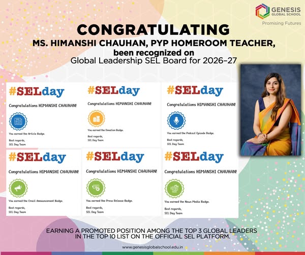 We are delighted to share that Ms. Himanshi Chauhan, PYP Homeroom Teacher, has once again been recognized on the Global Leadership SEL Board for 2026–27, earning a promoted position among the Top 3 global leaders in the Top 10 list on the official SEL platform. This builds on her 2025 achievement, where she was ranked […]