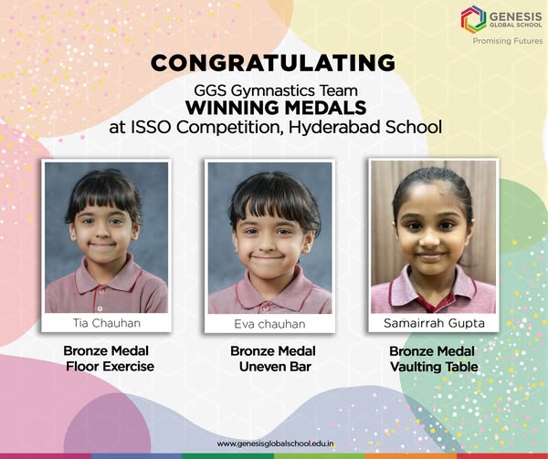 We are incredibly proud to share that our Genesis Gymnastics students recently showcased their talent at the ISSO Competition held at Hyderabad School. Our gymnasts demonstrated exceptional skill and determination, earning individual medals across various apparatus. Congratulations to Tia Chauhan (PYP3) for winning bronze on the Floor Exercise, Eva Chauhan (PYP3) for securing bronze on […]