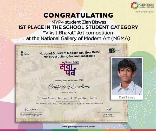 Proud of MYP4 student Zian Biswas for winning 1st place in the School Student category, sharing the honour with six other winners from Delhi and beyond at the recently concluded “Viksit Bharat” Art competition at the National Gallery of Modern Art (NGMA). Competing alongside art professionals, college, and school students. The event not only boosted […]