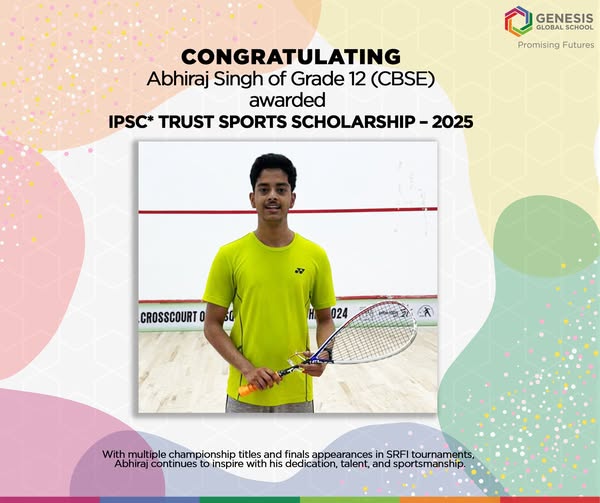 We are proud to announce that Abhiraj Singh of Grade 12 (CBSE) has been awarded the IPSC* Trust Sports Scholarship – 2025. Abhiraj has had an exceptional squash journey. He has represented India at the U.S. Open, reached the Quarter Finals of the Australian Open and Oceania Open, and competed at major events like the […]