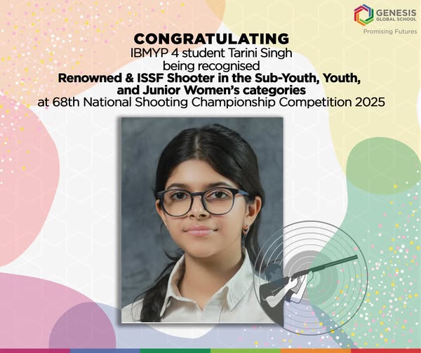 Heartiest congratulations to IBMYP 4 student Tarini Singh on earning the distinguished honour of being recognized as a Renowned & ISSF Shooter in the Sub-Youth Women’s category at the prestigious 68th National Shooting Championship Competition 2025, recently held at the Dr. Karni Singh Shooting Range, New Delhi.
