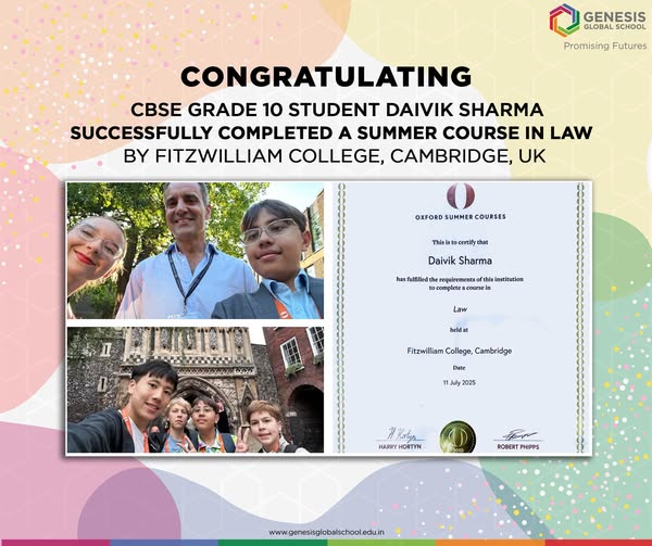 We are delighted to announce that CBSE Grade 10 student Daivik Sharma was selected to attend the prestigious Oxford Summer Courses and has successfully completed a summer course in Law conducted by Fitzwilliam College, Cambridge, UK. This was a residential academic programme held during the summer, offering a unique blend of learning, cultural exchange, and […]